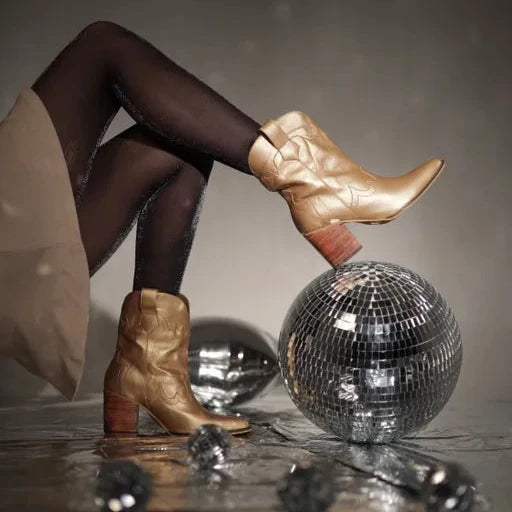 El botín Aranca encarna la esencia del estilo western con una sofisticación contemporánea. Su diseño presenta una silueta de caña media con los icónicos bordados tonales que definen la estética vaquera, complementada por una elegante punta afilada. El distintivo tacón cubano con acabado tipo madera proporciona una altura cómoda y un toque auténtico. Confeccionado en un llamativo acabado metalizado, este modelo está disponible en la riqueza del cuero genuino o en la versatilidad del cuero sintético de alta calidad. Para una personalización exclusiva, puede fabricarse bajo pedido en el color de tu elección.