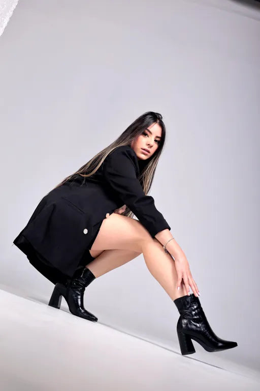 El diseño Classic es un botín atemporal de caña media que combina elegancia y comodidad, perfecto para elevar cualquier look del día a la noche. Su silueta limpia y sofisticada se resalta con un tacón cuadrado de altura media que brinda estabilidad y un toque femenino. Disponible en cuero sintético o genuino, este modelo se presenta en versión beige o negro con textura tipo croco. Su cierre lateral con cremallera facilita el calce y asegura un ajuste perfecto al tobillo. Ideal para combinar con jeans, vestidos o pantalones de vestir, este botín es un imprescindible en el clóset de cualquier mujer