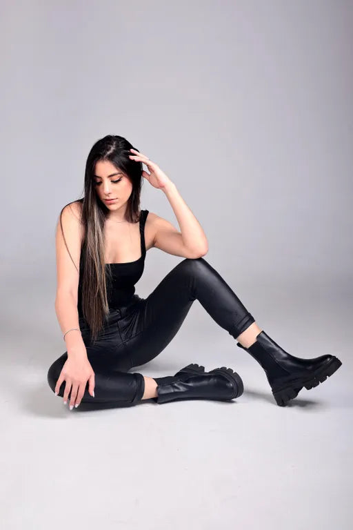 El modelo Retro es un botín tipo chelsea con un aire audaz y urbano, diseñado para las mujeres que buscan destacar sin sacrificar comodidad. Su silueta robusta está confeccionada en cuero sintético o genuino, según tu elección, con paneles elásticos laterales que facilitan el calce. La suela gruesa de diseño track no solo aporta un look poderoso, sino que garantiza tracción y seguridad en cada paso. Su estilo minimalista y contemporáneo lo convierte en el aliado perfecto para looks casuales o streetwear, ideal para combinar con jeans, leggings o incluso vestidos. Un botín que fusiona actitud y versatilidad, pensado para acompañarte en cualquier plan del día.