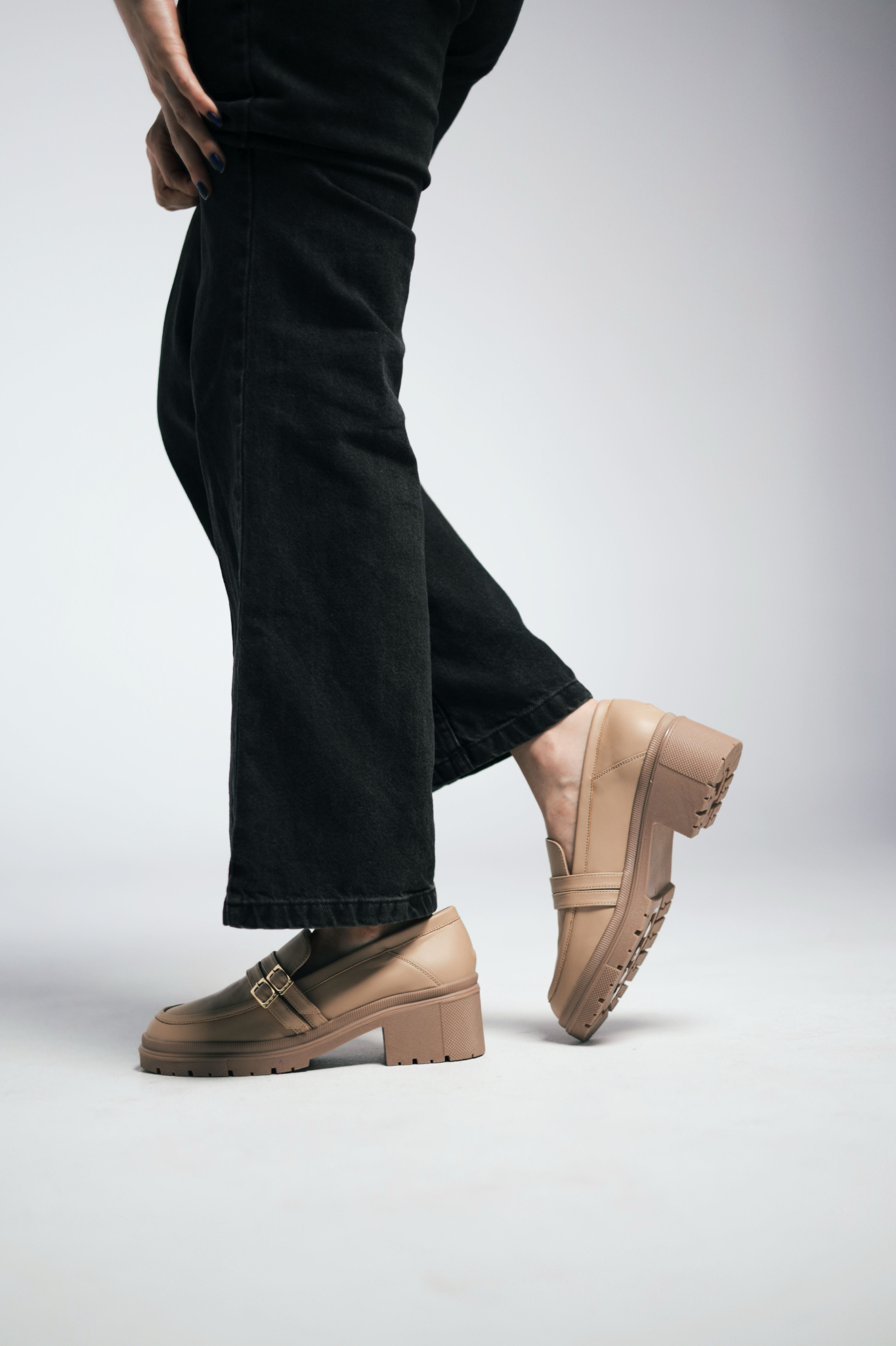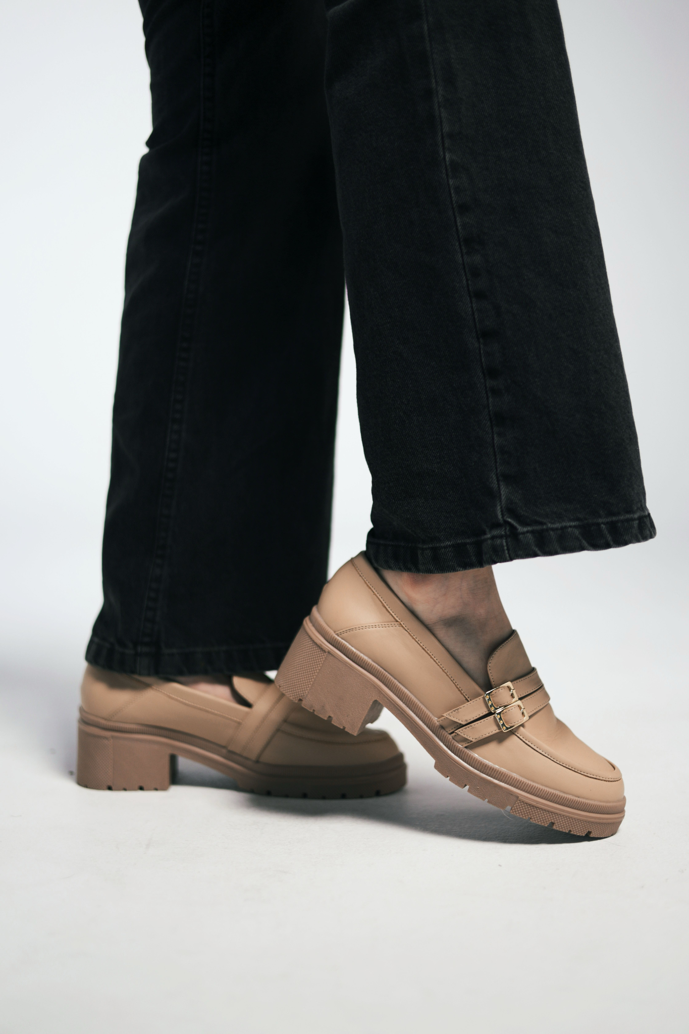 El mocasín Sevilla reinterpreta el diseño clásico con una estética audaz y contemporánea. Su silueta se eleva sobre un imponente tacón de bloque y una robusta suela track, proporcionando altura con una comodidad excepcional. El empeine se distingue por una elegante correa con doble hebilla que aporta un toque de carácter único. Realizado en un sofisticado diseño monocromático, este modelo está disponible en la calidad premium del cuero genuino o en la versatilidad del cuero sintético. Para una personalización exclusiva, se puede fabricar bajo pedido en el color de tu elección.