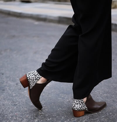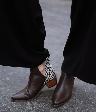 El diseño Blick es un mocasín moderno que combina elegancia y un toque atrevido. Su base está hecha en cuero (puede ser cuero genuino o sintético, según prefieras), en un tono marrón oscuro que aporta sobriedad y estilo. La parte trasera destaca con un contraste único gracias al acabado en textura tipo animal print en blanco y negro, que le da un aire sofisticado y distintivo. Cuenta con un tacón de madera de altura media, ideal para brindar comodidad y realce sin sacrificar estabilidad. Este diseño es perfecto para quienes buscan un calzado versátil que combine con atuendos formales y casuales. Se puede realizar en otros colores y combinaciones según tu preferencia, aunque las fotos disponibles corresponden al diseño original que ves aquí.