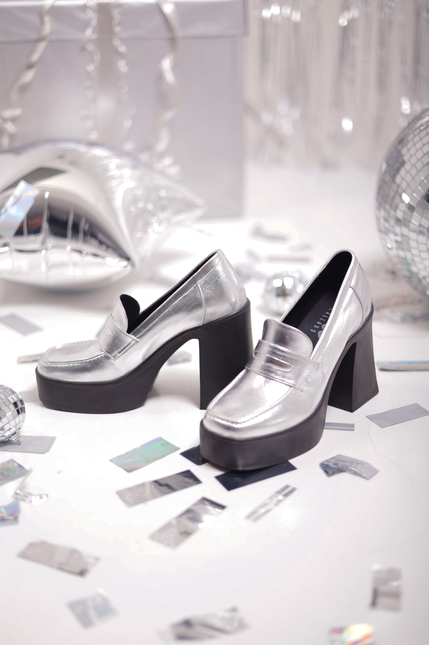 Mocasín tacón Plataforma 7-1/2 PLata, 7-1/2